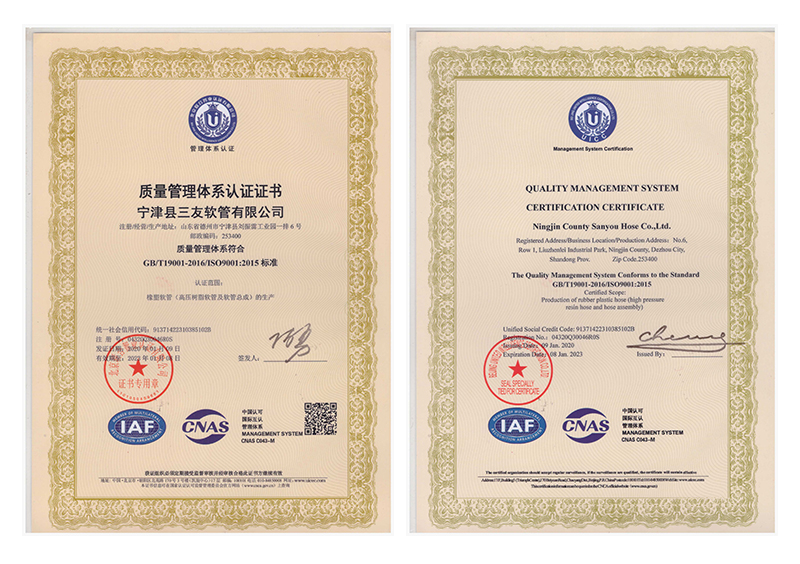 三友軟管有限公司生產的高壓軟管、超高壓軟管、噴涂管、測壓軟管、管接頭、超高壓水射流清洗軟管等,現已廣泛應用在石油、化工、工程機械制造、煤礦、造船、航空、汽車、醫療器械等行業,是各種液體和粉體輸送、高壓噴涂、高壓清洗、噴砂除銹等領域的理想軟管。公司成立于2002年是以生產各種低、中、高壓,超高壓軟管的科技型企業。 三友軟管奉守“人誠品優”的原則,科學可靠的設計,精益求精的制造,準時快捷的服務,是我們對您不變的承諾!積極倡導“只做精品”的經營理念,努力為用戶提供優良的產品和服務真誠希望您與我們聯系,我們將竭誠為您服務。